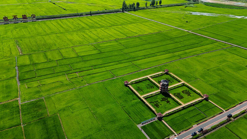 顺着时彦鹏手指的方向望去,“稻田画”清晰可见,用不同水稻的颜色勾勒出“幸福光东,感恩奋进”八个字。“这边是‘吉粳81号’,那边是‘小粒香’,利用村子优质的自然条件,我们做科学育种,不断培育高品质大米。”时彦鹏说,“以前大米只能卖两三块钱一斤,自实施科学赋能和品牌培育后,现在品牌大米价格最低是8块钱一斤,品质最高的一斤能卖50元,销售到日韩等国。”
