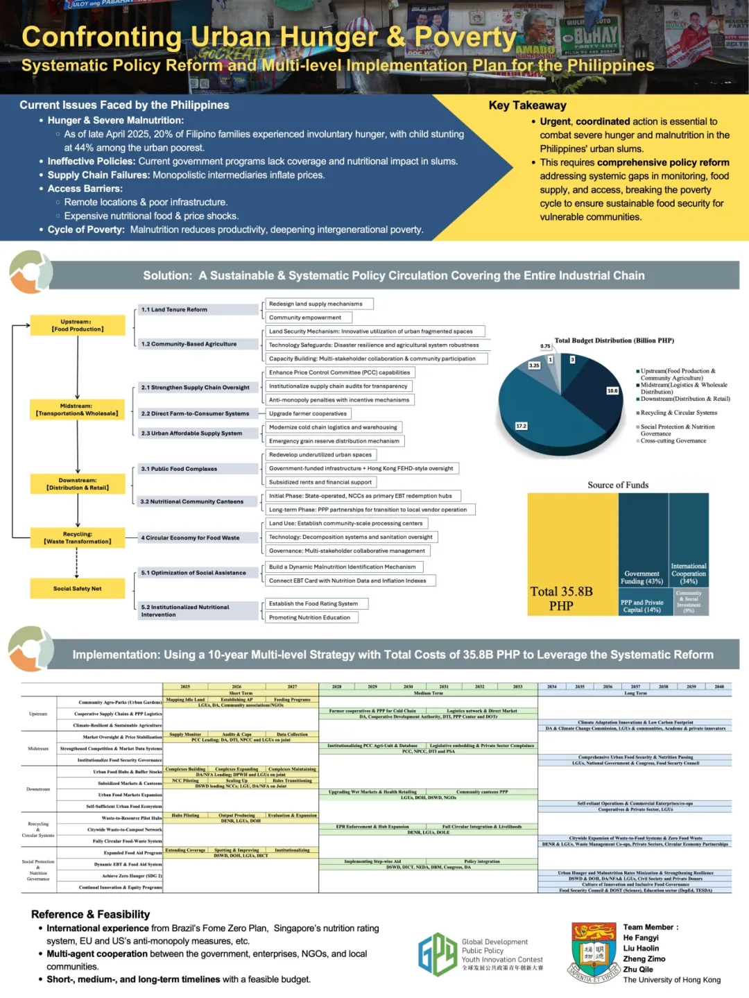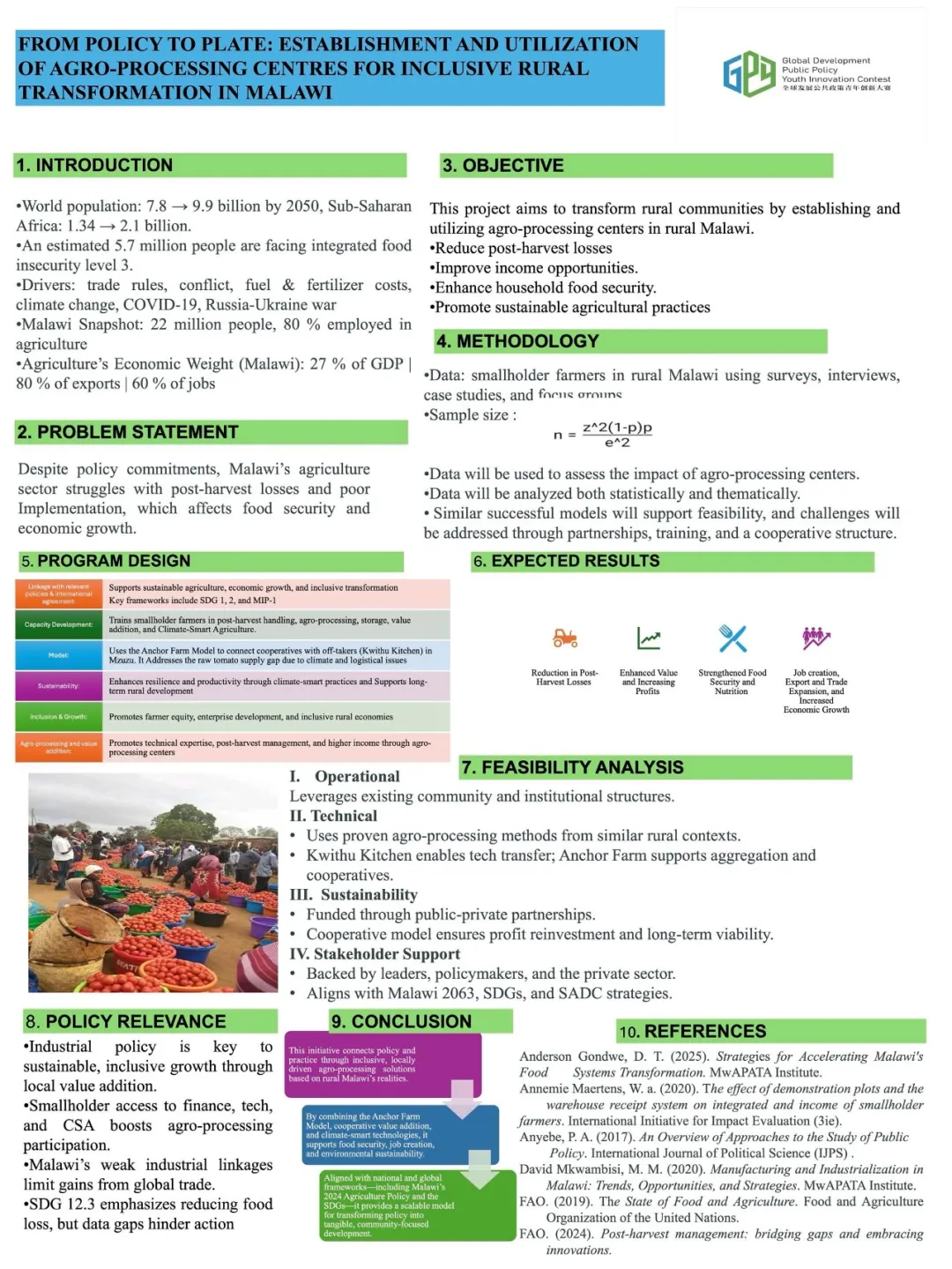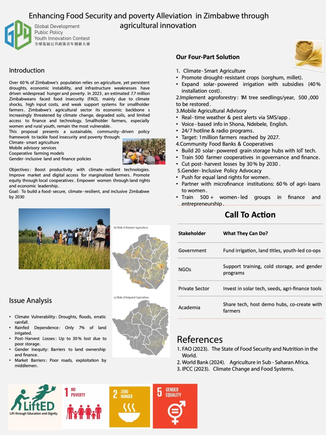 为响应全球发展倡议、落实联合国《2030年可持续发展议程》,中国人民大学作为青年外交高校联盟理事长单位,在中华全国青年联合会的指导下,创办“全球发展公共政策青年创新大赛”,为国内高校学子参与国际交流、投身全球治理搭建起创新平台。大赛以“粮食安全与消除贫困”为主题,围绕联合国粮食及农业组织《2022—2031年战略框架》的20个重点领域,邀请全球知名高校青年大学生以组队提案的方式,深入探讨全球发展公共政策热点、难点,并从青年视角提出政策创新和解决方案。
