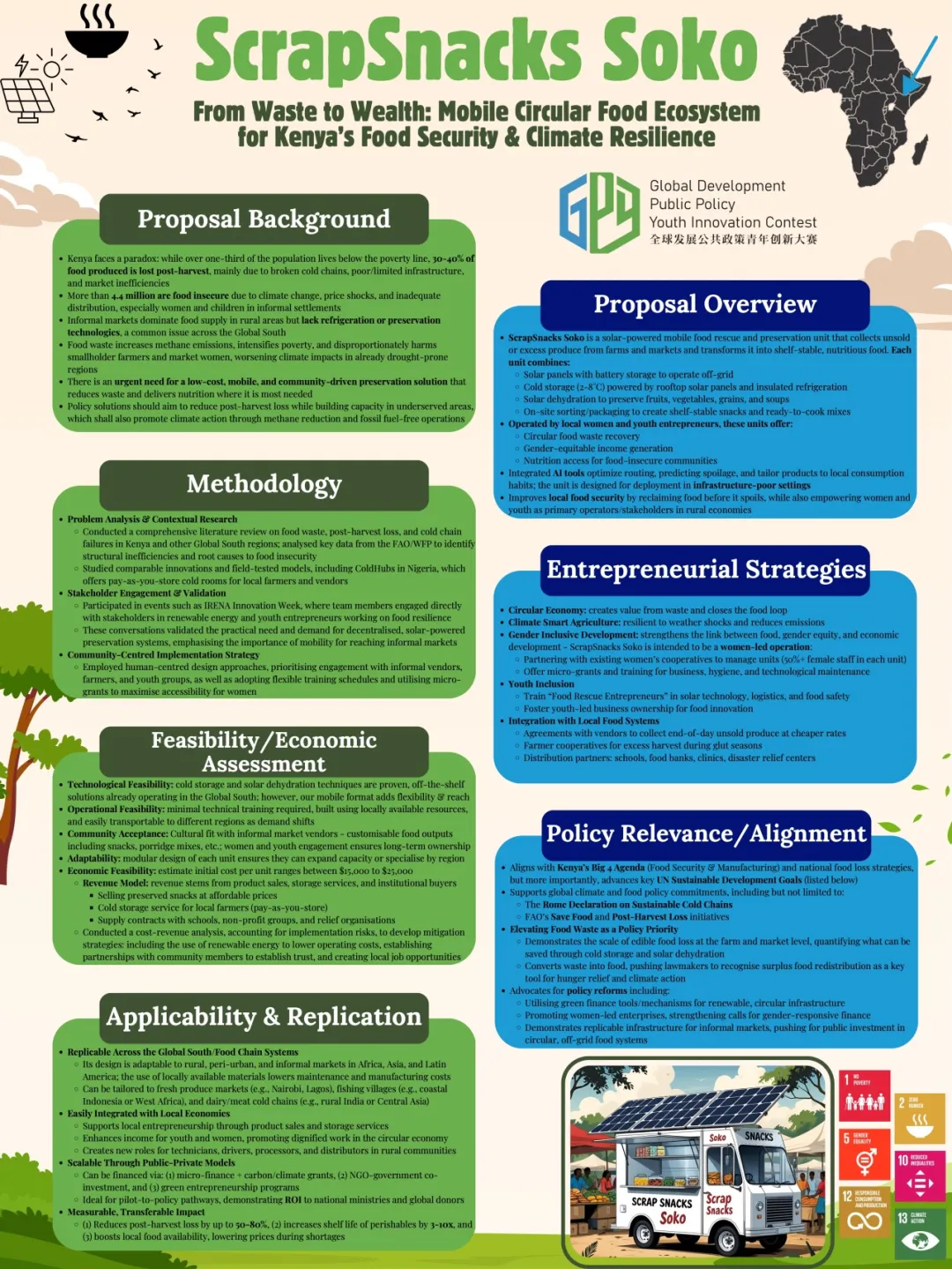 美国青年Andre Luis Ferreira带领的比利时鲁汶大学团队 将目光投向肯尼亚内罗毕街头,在那里,40%农产品因缺乏冷链设施而变质,数百万人遭遇饥荒。他们提出的“太阳能移动式冷却脱水一体机 ”能将果蔬保鲜期从2天延长至21天,为投用地区节约大量食材。下一步,他们要把移动设备部署到更多地区,让每一份新鲜食材都能送到需要的人手里。