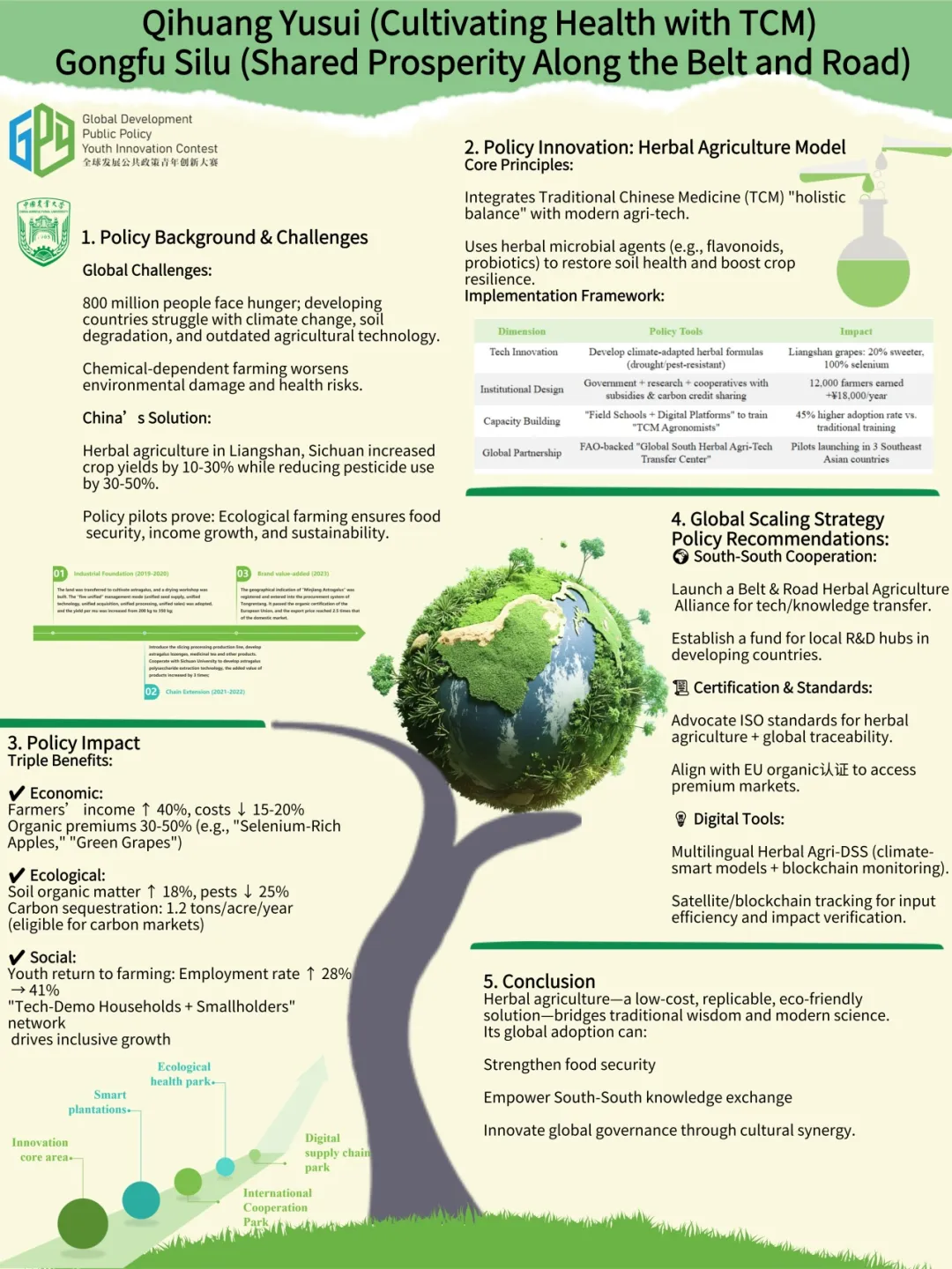 用AI、物联网为粮食作物增产“植入绿色芯片”,用区块链技术解决食物匮乏问题,农村金融创新、农业绿色转型、营养健康、中医药合作……全球青年扎根泥土、书写政策建议,让“小切口”撬动“大变革”。