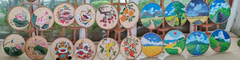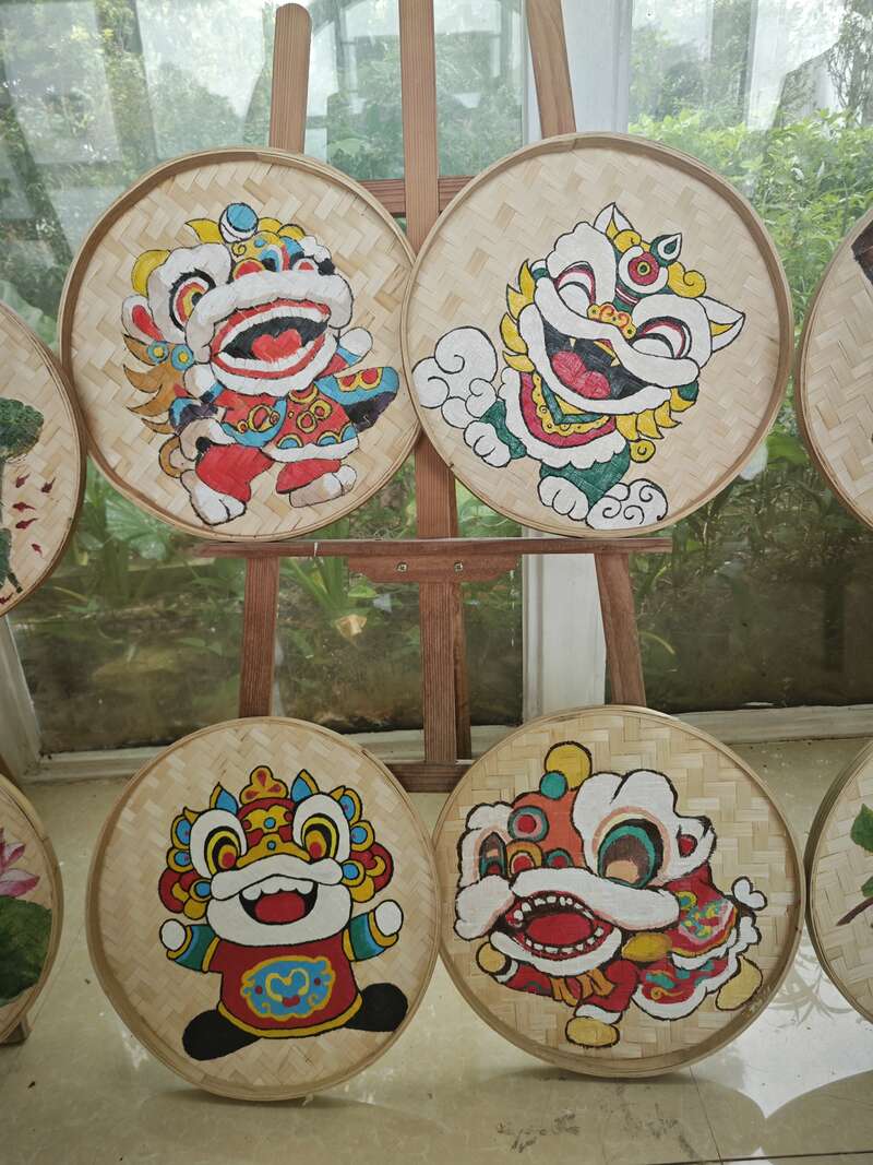 有的成员以簸箕为创作载体,手绘出20幅艺术作品,涵盖“自然风光、非遗醒狮、传统文化”三大主题。林瑞丹表示,“我们将前往荷花池和柠檬、百香果园等地的道路进行美化,采用簸箕进行手绘展现,更能够体现乡村特色。”