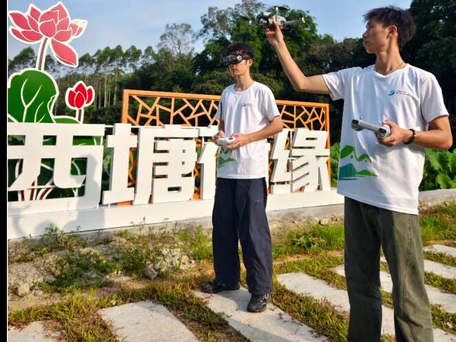 女同学打伞出镜、男同学操控无人机航拍......近日,广州华夏职业学院正青春实践团23名师生来到广州市从化区西塘村开展暑期“三下乡”社会实践活动——“爆改”西塘村并为其拍摄制作文旅宣传片。