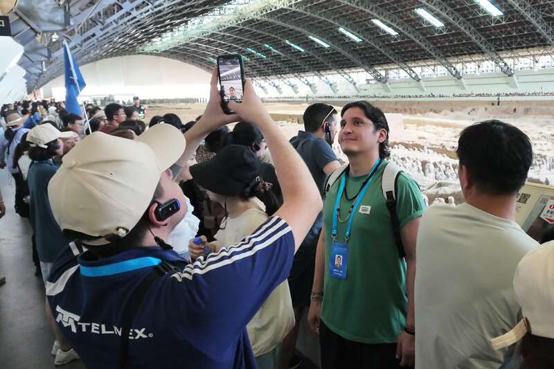 “中国的文化遗产都非常迷人。你们的祖先在漫长的岁月里保留下了这些文化和历史财富,如今的青年继续去保护这些文化遗产,这真的非常美妙。”走进陕西历史博物馆秦汉馆,一幅全面翔实的历史画卷为拉美青年代表们生动展现了千年以前西安古都的文化脉络。置身于真实的历史文物与数字技术下的复原与重现,哥伦比亚青年生物多样性网络联合负责人埃斯特万·马林·尼古拉斯·昆特罗感叹于中国历史文化的新旧传承。在他看来,青年是推动历史以及自然遗产保护的重要力量,“哥伦比亚的青年乐于分享我们的观点,我们应该汇聚青年力量,推动两国青年在当下、在未来,继续保护这些珍贵的遗产。”