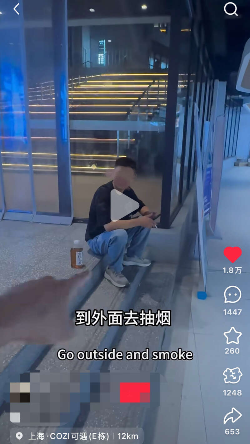 这一事件引发广泛关注,经核实,抽烟地点位于闵行区新虹街道申滨路1033号可遇公寓的商业区。