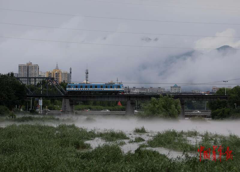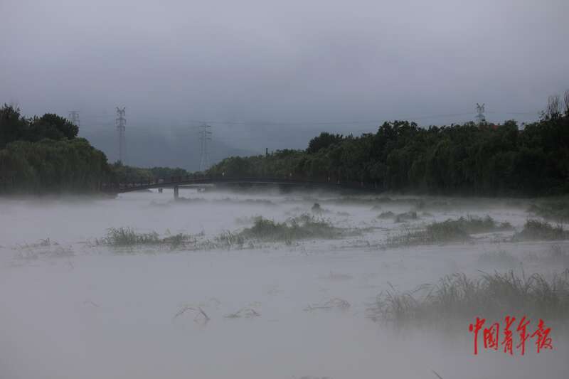 7月28日,北京市密云区,白河河面雾气升腾。近日,受暴雨和密云水库泄洪的影响,密云城区附近的白河河道水位上涨,河面因水汽蒸发形成持续雾气,部分路段的大桥也被雾气笼罩。 相关部门提醒市民近期不要进山下水,注意防范洪水及次生灾害。中青报·中青网记者 陈剑/摄