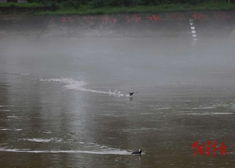 7月28日,北京市密云区,白河河面雾气升腾,水鸟在河面游弋。中青报·中青网记者 陈剑/摄