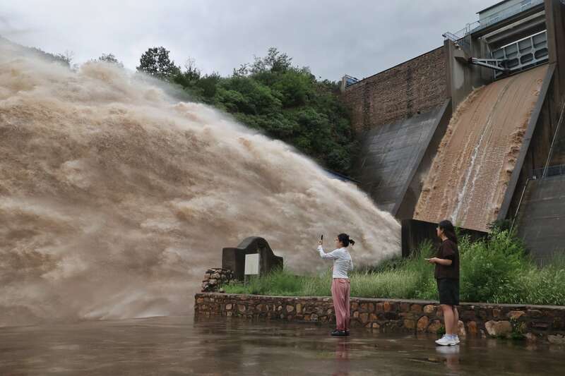 截至记者发稿,黄松峪水库的来水量超50年一遇标准,泄水量达到了每秒200立方米。