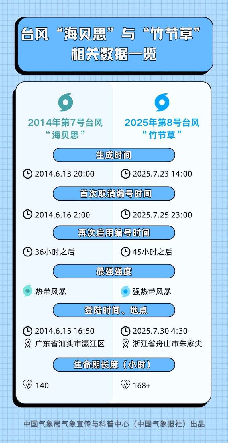台风“重装上阵”甚至杀个“回马枪”的情况并不鲜见。但自2000年以来,只有一个台风在停编后又被中央气象台“续编”,那就是2014年第7号台风“海贝思”。