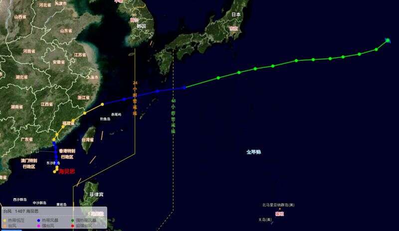 2014年6月15日16时左右,第7号台风“海贝思”在广东省汕头市登陆后强度迅速减弱,中央气象台对其停止编号。但其本体仍未完全消散,并在福建省福州市连江县琯头镇附近出海,随后强度再度增强。6月17日5时,“海贝思”升格为热带低压,移至东海后加速向东北偏东方向移动。中央气象台于当日14时把“海贝思”再度升级为热带风暴,恢复其“第7号台风”的身份。6月18日,在冷空气的作用下,“海贝思”逐渐转化为温带气旋。