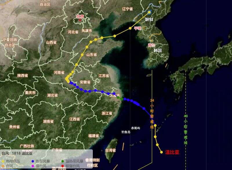 值得一提的是,2018年第18号台风“温比亚”与“竹节草”续编后的路径相似,也曾登陆前短暂加强。台风“温比亚”于2018年8月15日14时在东海东南部海面生成,仅经过一天半的时间,就于17日4时5分在上海浦东新区南部沿海登陆。20日上午,“温比亚”离开山东进入渤海湾后变性为温带气旋,强度增强,后于20日夜间在黄海北部海面进一步减弱,21日2时中央气象台对其停止编号。