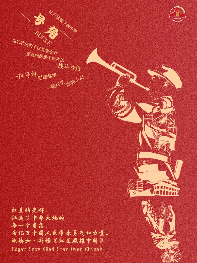 《红星照耀中国》封面是斯诺摄于1936年并亲自命名的经典图片《抗战之声》:一面迎风飘扬写着“中国人民红军抗日先锋军”的红旗,一位手持军号、举止间透着坚毅,呈现勇往直前姿态的红军小号手,光影在黄土高原上刻出决绝的剪影。该书自1937年问世后,作为该书部分版本的标志性封面(或插图),这幅作品衍生为广受大众熟知的抗战意象,召唤无数热血青年投身抗日救亡运动。相关图文报道更成为中国共产党领导下的红色中国走向国际传播的里程碑。