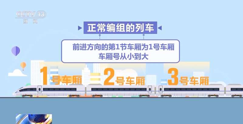 国铁太原局大同南站客运值班员 张家莺:现在大多数车站都在旅客进入站台处的LED屏上显示车厢排序信息,旅客通过排序能判断自己的车厢是应该往前走还是往后走。很多高铁站还设置有黄、绿、蓝、紫等颜色的地标,地标上标注的数字代表列车停靠站台后车厢所在的位置。