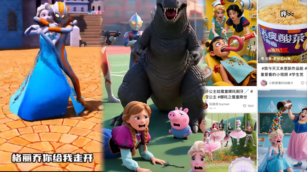 记者发现,这些“邪典动画”混在儿童动画的分类里,且很多为AI合成。大量经典动画形象经AI二创后,各种诡异、引人不适的内容被海量发布在视频平台。