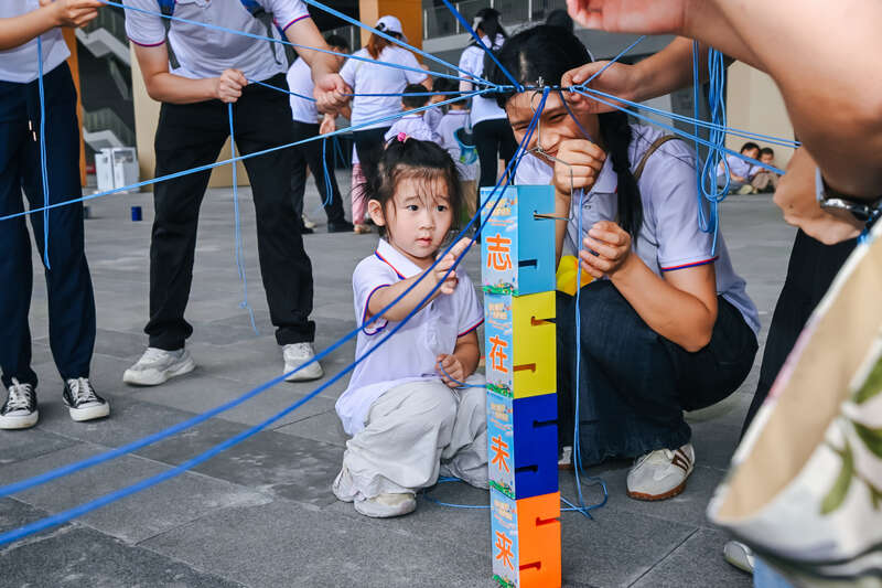 亲子家庭一起完成挑战任务。李骏文/摄