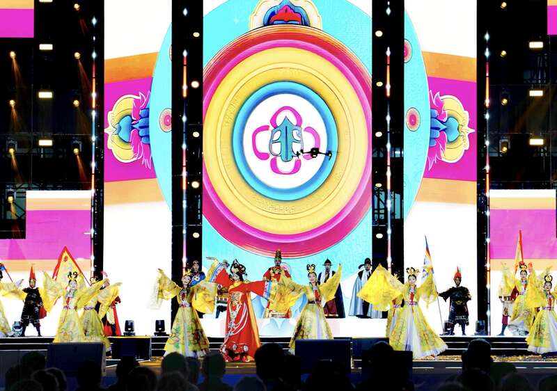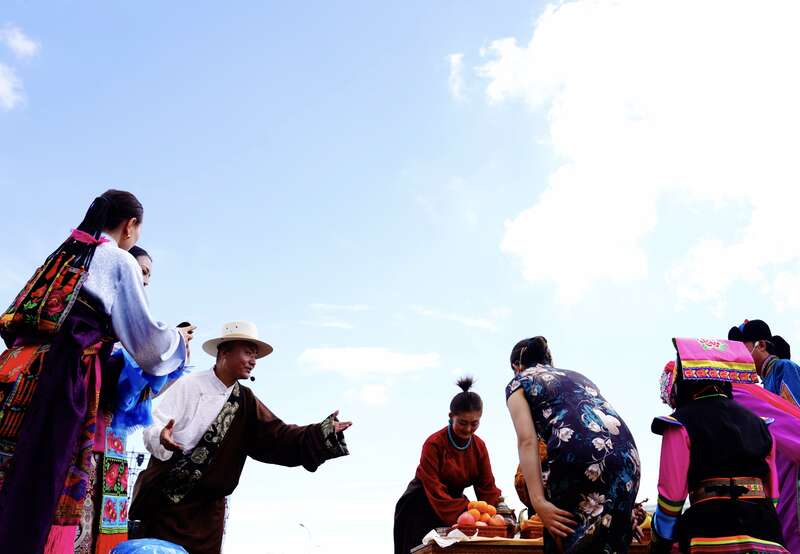 8月8日,青海省海南藏族自治州,2025年藏族服饰文化艺术节,情景歌舞《千里和缘》,讲述文成公主进藏和亲,让民族团结的种子深植高原沃土的故事。赵树宴/摄