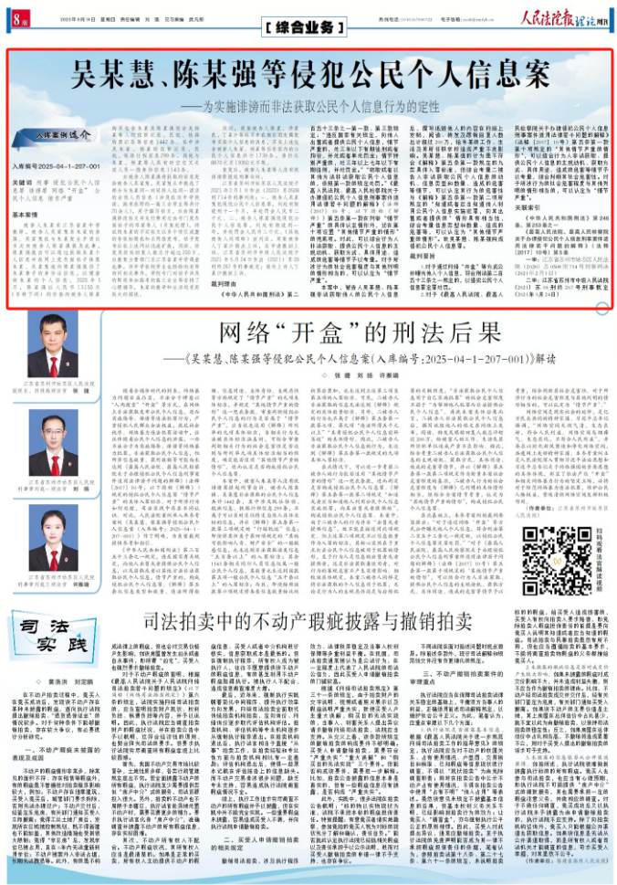 今天,最高人民法院发布入库参考案例《吴某慧、陈某强等侵犯公民个人信息案》,为实施诽谤而非法获取公民个人信息行为定性。