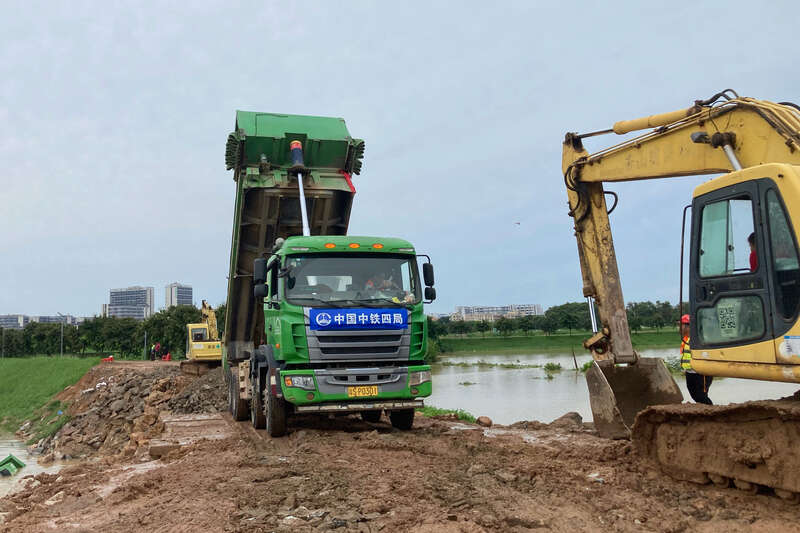 当晚23时40分,中铁四局环莞路北延线项目部青年突击队接到抢险指令后,立即启动应急预案。队长陈垚说,全体突击队员在30分钟内集合完毕;不到1小时,包括青年突击队员在内的103人抢险队伍迅速完成编组,并组织11台泥头车、3台平板车等设备星夜驰援。