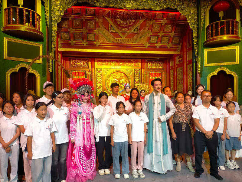 师生们与粤剧《船说》演职人员合影。受访者供图