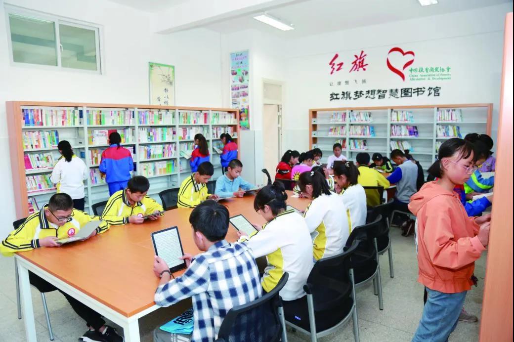 今年10月,数个“红旗梦想智慧图书馆”在西柏坡、遵义、延安等老区的小学揭牌启用。