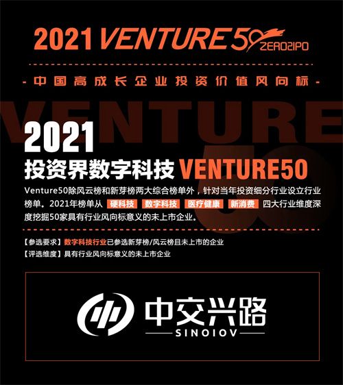 今年评选,清科创业、投资界继续与数百家投资机构、逾千位投资人携手,深耕产业,持续发掘高成长企业,让科技创新与产业资本相辅相融。本次评选设置了风云榜、新芽榜以及硬科技、数字科技、医疗健康、新消费四大行业榜单。中交兴路入选的“2021投资界数字科技VENTURE50”,主要面向数字科技领域中具有行业风向标意义的未上市公司。