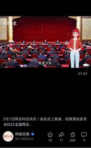 两会作为重大的国家级会议,对报道的内容质量、效率产出提出了更高要求。而对于智能主播来说,如何识别媒体文本严谨的内容风格并加以演绎,成为考验其技术的关键。以百度联合工人日报推出的《两会晓晓说》栏目为例, 报道中度晓晓形象亲切自然,专业能力出色,声情并茂地为受众播报严谨而不失生动的媒体新闻内容,并将数据可视化,降低受众理解门槛。同样在科技日报的报道中,度晓晓也化身智能播报员为观众带来了多期准确即时的两会科技快讯。