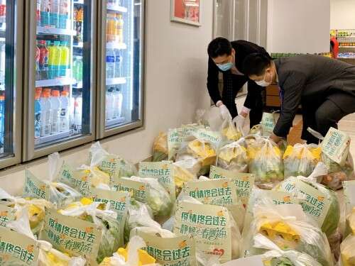 当天下午,在北新泾街道慈善超市内,优科豪马轮胎中国集团董事长结城正博先生与董事长辅佐范明先生一起早早来到现场,与街道的工作人员一起将菜分拣装袋,保证每个“爱心菜包”中都包含禽蛋、肉类和蔬菜,种类丰富,新鲜健康。下午4时,爱心菜顺利装车,统一转运并分发给封控区、管控区内的居民。