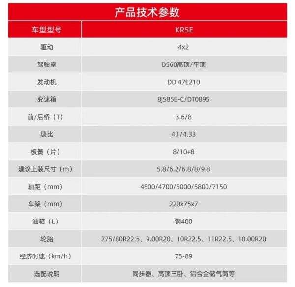 而另一款参与的车型,则是卡友们非常熟悉的一款中卡车型,东风天锦KR。该车搭载满足国六b排放的龙擎DDi47E210-60柴油发动机,发动机排量4.75L,最大可输出210马力,最大扭矩750N.m。该发动机经济节能,耐用可靠,属于东风商用车全新开发的国六龙擎发动机系列产品,通过市场验证,深受用户好评。匹配的是法士特8JS八挡手动变速箱,业内俗称“小八挡”,可靠性高,体积小、重量轻,齿轮优化设计,啮合平稳,噪音低。整车在具备了不错的燃油经济性下,还能广泛适应绿通、散杂、快递、快运等细分市场,可谓是“一专多能”。