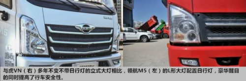 不仅如此,领航M5在美貌之下还颇具实用。与虎VN多年不变不带日行灯的立式大灯相比,领航M5的L形大灯配置日行灯和自动大灯,豪华醒目的同时提高了行车安全性。