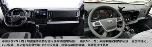 在内饰设计上,领航M5显然更加给力,乘用化的内饰设计更加年轻化,LCD仪表、多功能方向盘外加10.1寸智能大屏,视觉与功能性兼备,更加方便卡友们实时了解车辆情况以及日常接单抢单,小小的便利却带来更大的收入。