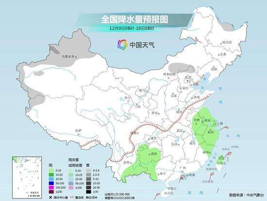 中央气象台预计,今天新疆南疆西部山区等地部分地区有小雪。安徽南部、江苏中南部、上海、江西东北部、浙江、四川盆地东南部、贵州中西部、云南东部和南部、广西西部、海南岛东北部等地部分地区有小雨。