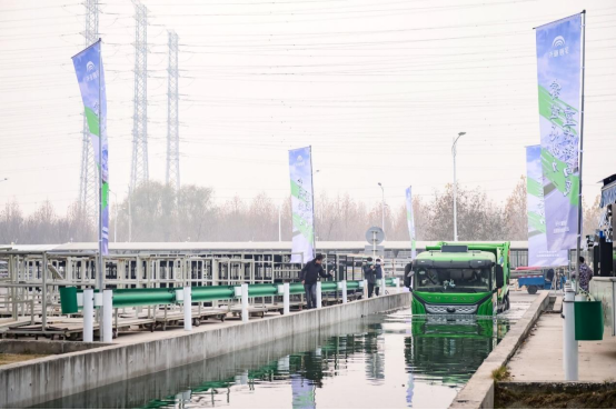 在完成了“重卡拉重卡”的壮举之后,一场更为特殊的挑战在新能源厂区的涉水池展开,大半车身淹没在水下依旧可以稳步前行,车轮带动着水花荡漾出车辆行驶过的痕迹。