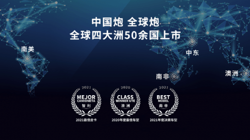 目前,长城皮卡全球累计用户突破200万。长城炮则仅用2年零8个月,即成为首个突破30万台的中国高端皮卡品牌,引领国内皮卡市场的同时,不断深化全球化进程。长城炮已在全球四大洲50余国上市,并一举斩获澳洲、南美年度最佳皮卡大奖,更成为澳洲ANCAP新标准下首个五星安全评级的中国品牌。