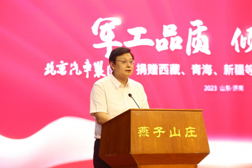 刘兴磊副厅长在讲话中表示,作为本次活动的捐赠单位,北京汽车制造厂陆付军董事长作为一名退役军人,保持军人本色,积极回馈社会,2019年被评为山东省优秀退役军人。这次主动捐赠18辆汽车,充分体现了民族品牌的强烈责任担当和优秀退役军人的深厚军人情怀,希望北京汽车制造厂能继续关心退役军人,支持退役军人工作,在吸纳就业、帮扶创业、服务保障等方面作出更大贡献。