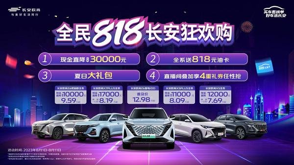 8月1日-8月31日,全民818长安狂欢购钜惠来袭!8月1日—8月11日开启818提前享,在此期间,购买长安欧尚Z6 智电iDD,限时现金直降至高30000元,全国普及价12.98万起,8月1日-8月11日期间交车客户送818元油卡和夏日大礼包,8月31日前在长安欧尚官方直播间和500家经销商网红直播间,可参与“优惠叠中叠”抢购车抵用券活动,叠加享4重礼券任性抢!