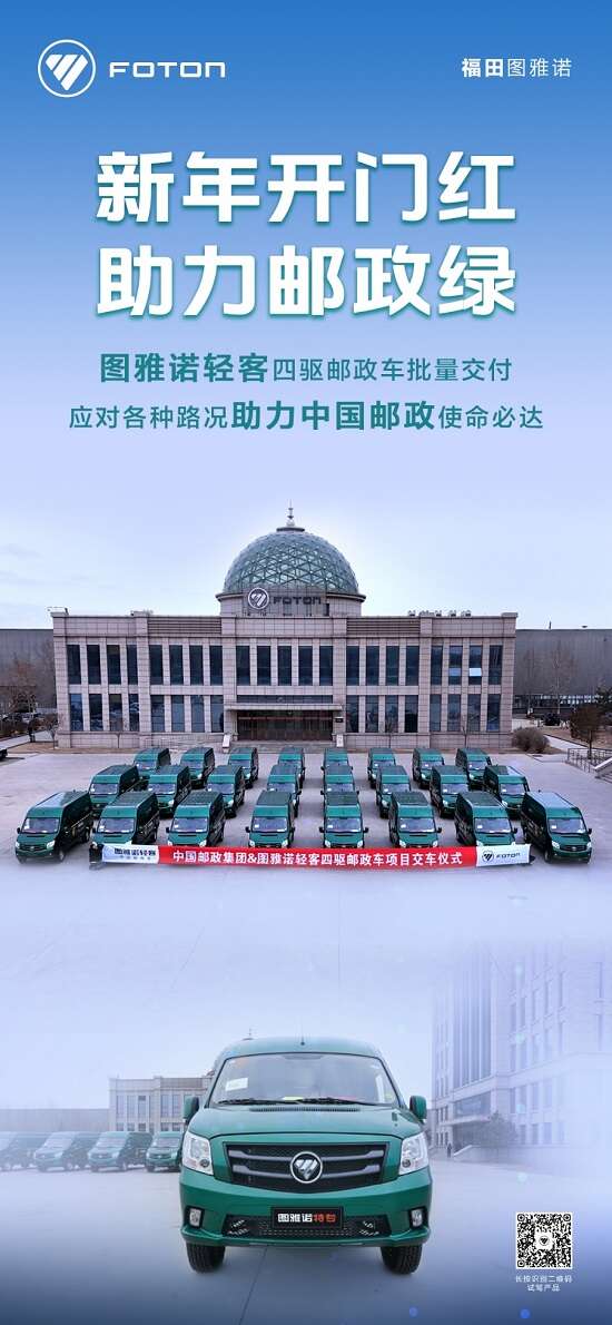 图雅诺轻客助力中国邮政使命必达,轻松应对各种路况,加速邮政行业的高质量发展,为2024汽车产业发展增添信心。