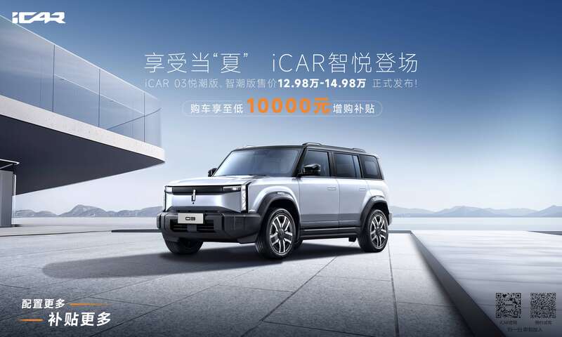 在取得优异成绩的同时,面对市场越来越激烈的内卷态势,以及年轻人对更高品质出行生活的不断追求,iCAR 03不断聚势推新,领潮进阶。7月10日,iCAR 03悦潮版、智潮版携四款新版型惊喜登场,并以12.98万-14.98万的售价及至低10000元增购补贴的权益,与年轻人交朋友,全面解锁更惬意自在的智慧出行新体验。