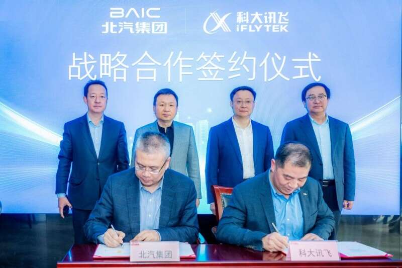 3月1日,科大讯飞董事长刘庆峰一行到访北汽集团,与北汽集团党委书记、董事长张建勇进行座谈交流,随后科大讯飞与北汽集团签订战略合作框架协议,双方将共同推动汽车智能化领域的全方位战略合作,依托先进的人工智能技术和大模型能力,全面提升智能网联汽车的研发水平以及企业数智化创新服务能力,通过技术创新引领未来出行方式的变革。