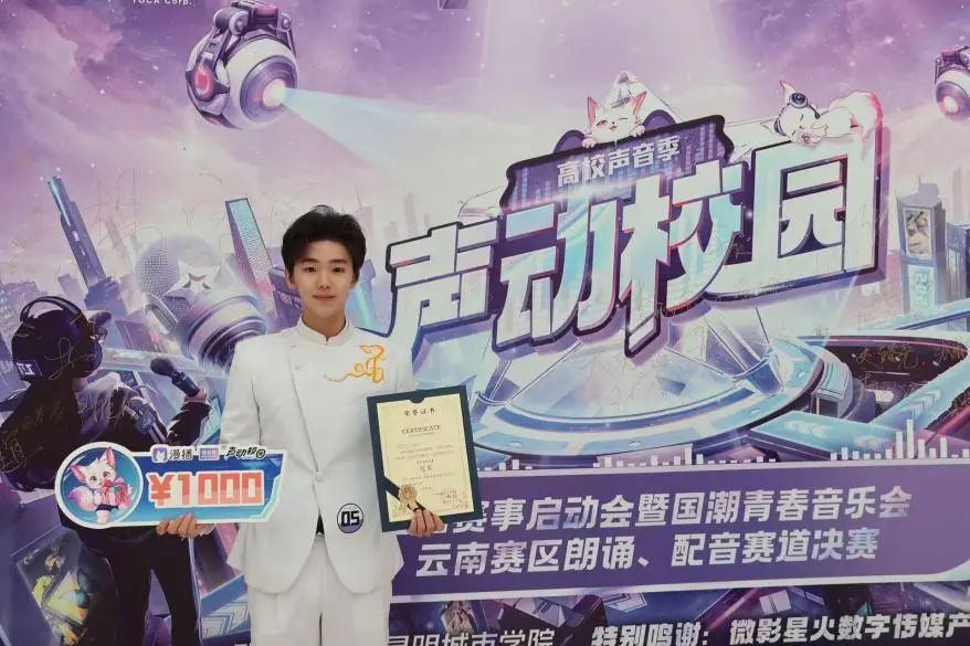 4月12日,“声动校园”高校声音季全国赛事启动会暨国潮青春音乐会在昆明城市学院举办。云南艺术学院戏剧学院播音系学生喜获佳绩。