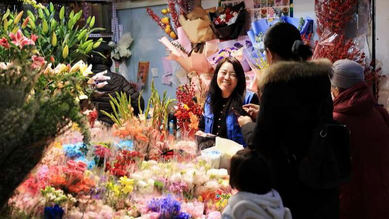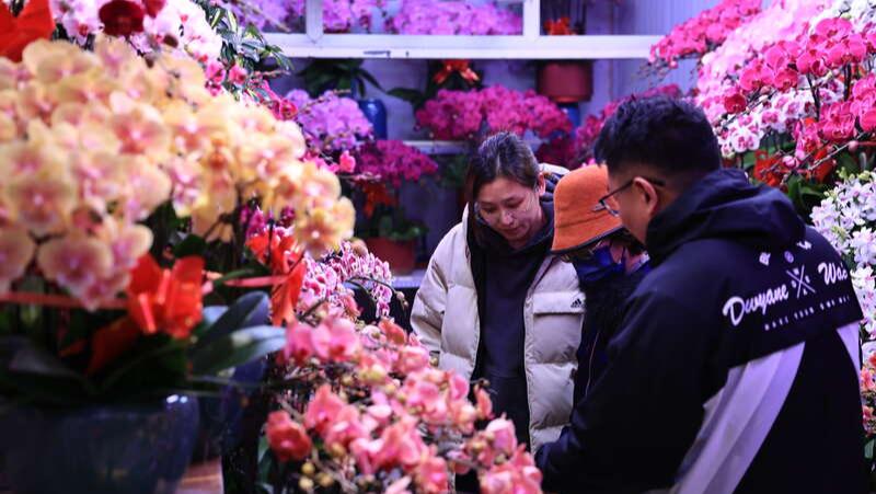 北京年宵花市迎销售高峰 市民选购忙“年味”浓