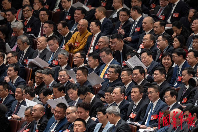 3月5日,北京,人民大会堂,十四届全国人大二次会议第一次全体会议,列席会议的政协委员在听会。中青报·中青网记者 李隽辉/摄
